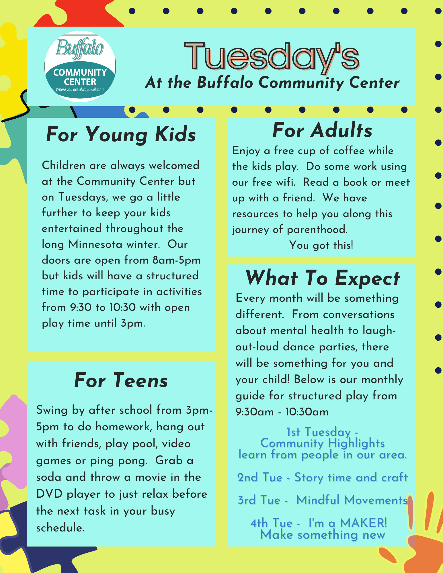 [ARCHIVED] Tuesday's at the Buffalo Community Center