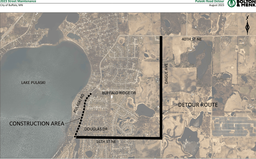 Roadwork on Pulaski Road from 16th St. NE to approximately 400’ south of Buffalo Ridge Dr. is planned to begin on August 7th.