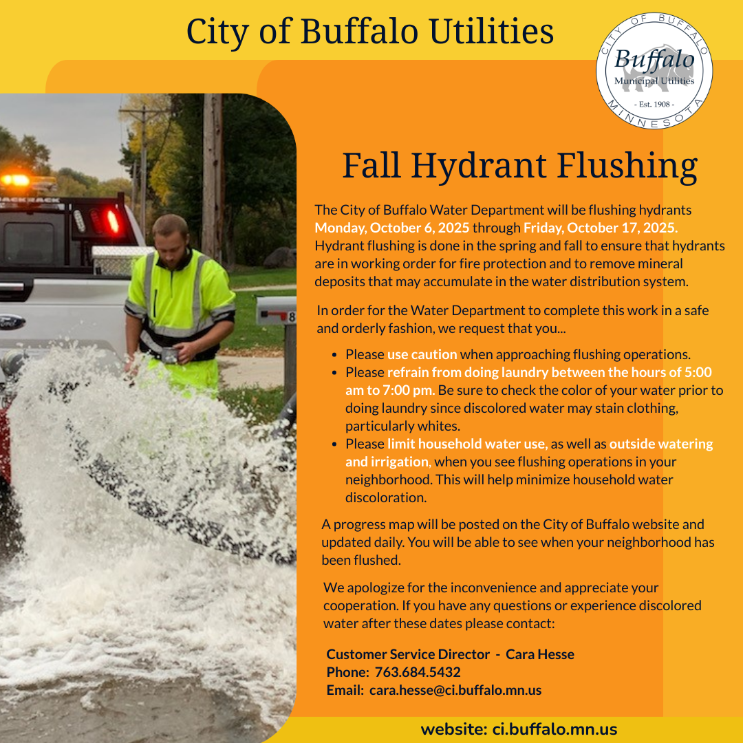 Please keep in mind that not every hydrant is flushed in every area each cycle. The City of Buffalo has 1062 public hydrants within city limits.
